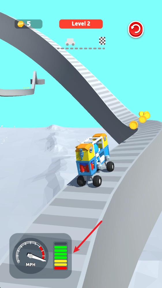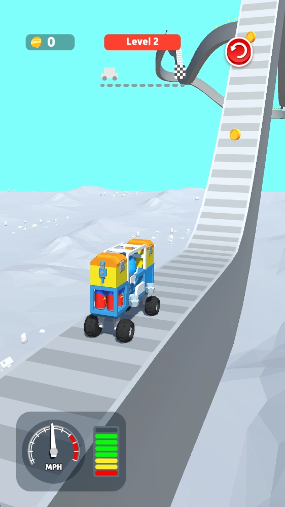 通过持续闯关解锁更多高性能零件,再借助重新组装升级你的小货车,助力你攻克更多关卡。
