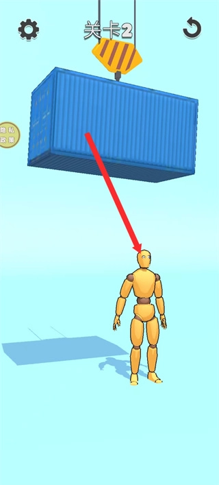 推进至第二关,操控木偶进行移动,避开上方悬挂集装箱的下落区域,顺利穿越该关卡的危险地带。