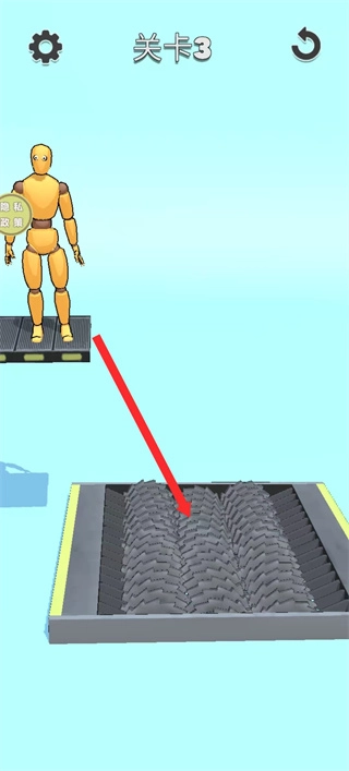 进入第三关后,需要操控木偶移动至安全地带,注意避开下方的尖刺等危险设施,顺利完成本关的避险任务。