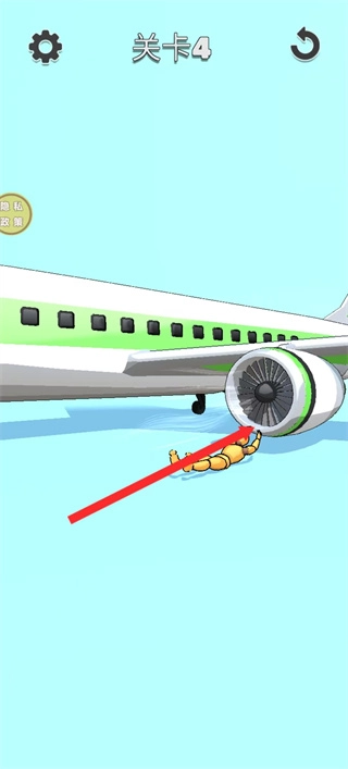 进入第四关后,需要操控木偶避开飞机引擎的危险区域,通过移动来躲避危险,从而推动关卡向前进展。