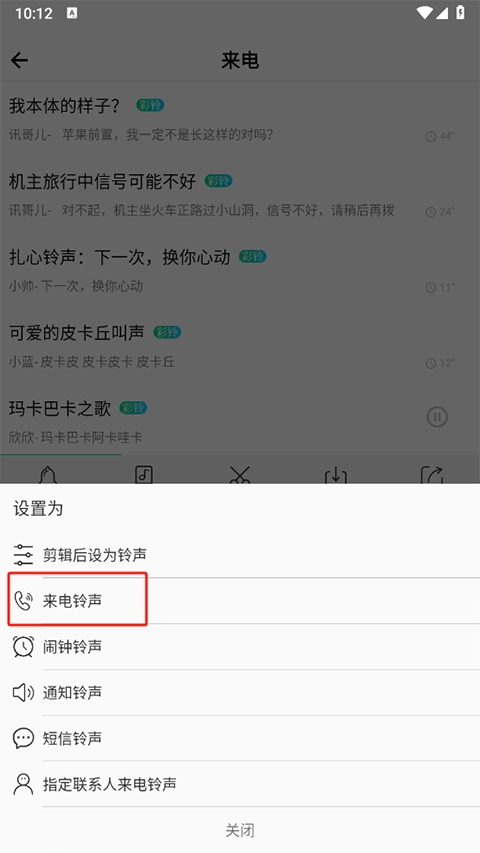 点击设置为来电铃声就行啦,当然你也可以把这个铃声设成闹钟、通知或者短信的铃声。