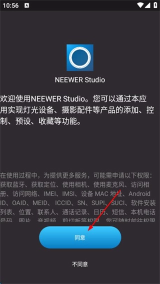 在使用协议与隐私政策弹窗中点击同意按钮后,即可进入登录页面。