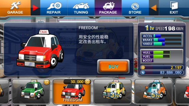 在游戏中我们可以购买各种喜欢的汽车。