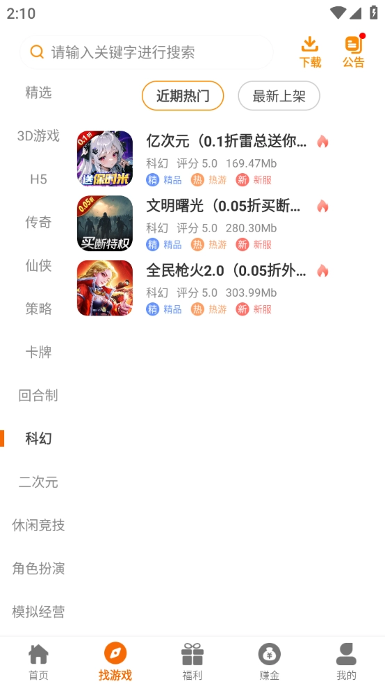 找游戏页面有详细的游戏资源分类,涵盖传奇、仙侠、卡牌等多种类型。
