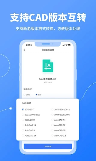 拥有智能版本兼容处理的能力,能够自动识别CAD文件的版本号。支持把高版本的图纸转换成低版本格式,从而有效解决由于软件版本不同而造成的文件无法打开、显示不正常等问题。