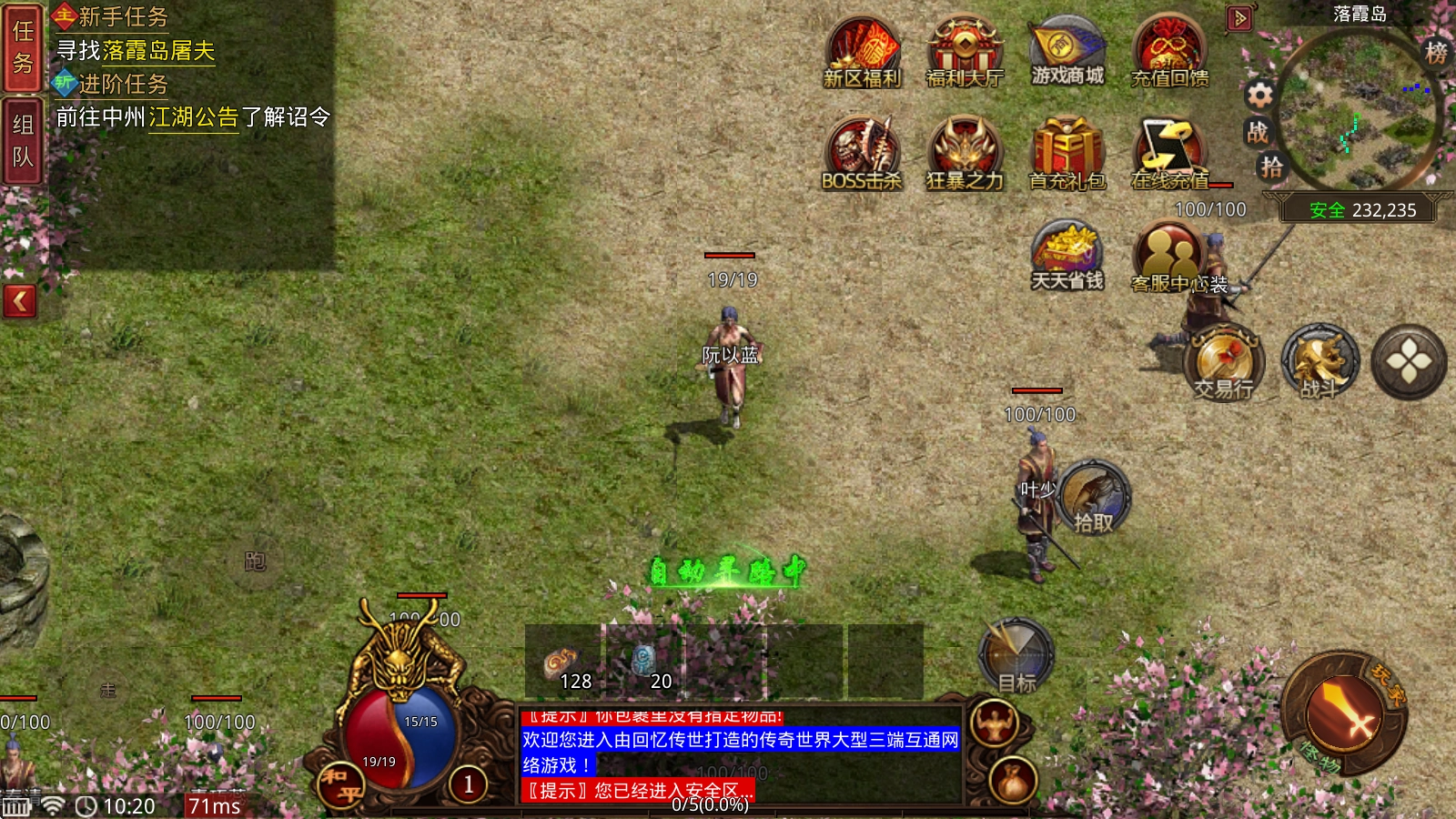 新手刚进入游戏时,先把新手任务做完,就能达到28级,还会获得初级技能。