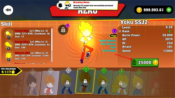 解锁角色后,可通过消耗金币提升其等级;等级提升后,技能等级也会随之提高,进而增强技能威力。