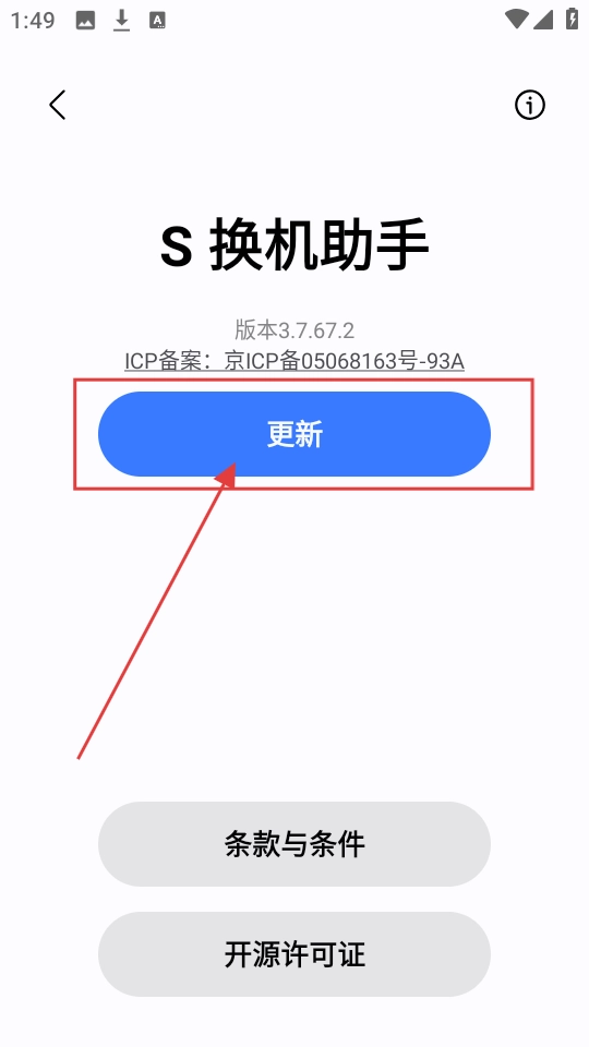 进入【关于S换机助手】页面后,可查看版本等相关信息,页面上还设有【更新】按钮,点击该按钮即可对S换机助手进行更新操作。