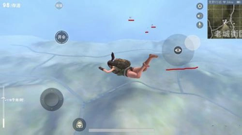 图里划线标注的全是跳伞的玩家,要是处于组队状态就能看到队友的名字,那些没显示名字的都是即将遭遇的对手。通过观察能大致判断人群的移动方向,在没开伞的时候还能选择避开他们,但开伞之后滑行速度会变慢,通常都会落在附近区域,一场战斗在所难免!15、为了能抢先获取物资,抵达目标降落区域后,保持面朝下的姿势,拖动上方向键快速俯冲,到了特定高度就会自动开伞,毕竟开伞后速度会变得很慢,一般不会有人手动开伞。