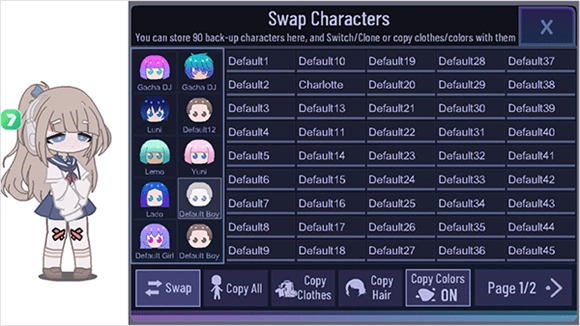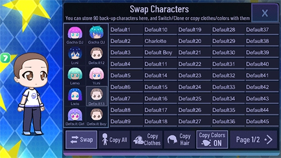 这里有一排用于保存人物的编号,你可以随意挑选一个,点击之后你的人物就会变回初始状态的小男孩。