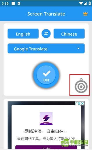 启动之后,界面上的按钮会显示为“ON”状态,同时还会出现一个悬浮球。