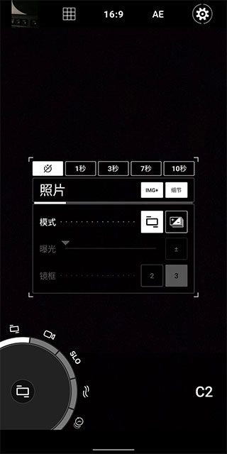 进入软件后,在竖屏模式下点击相机左下角的图标,就能对相机进行各项设置;点击对应的图标,还可以切换图片与视频的设置选项。