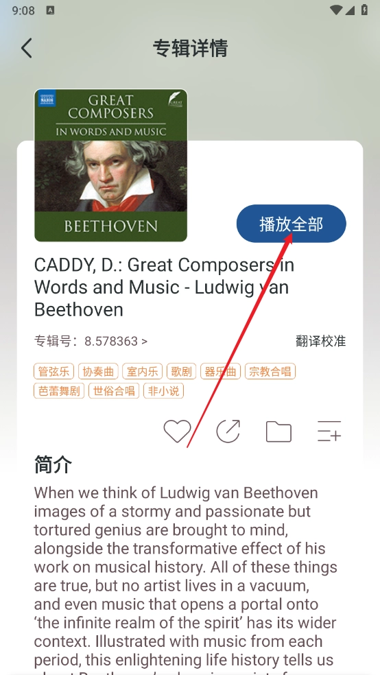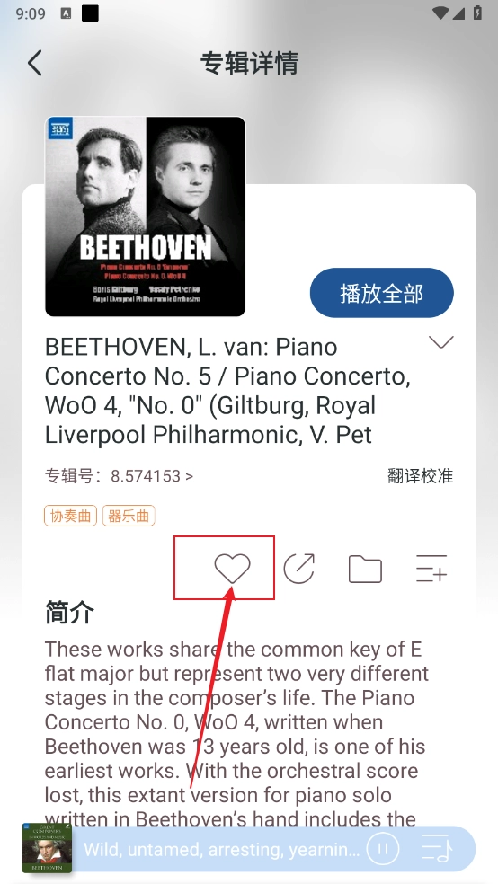 在专辑详情页嗲积极小爱心进行收藏,如图所示。