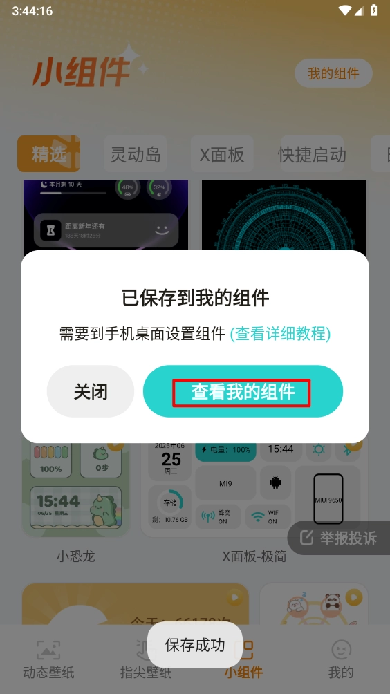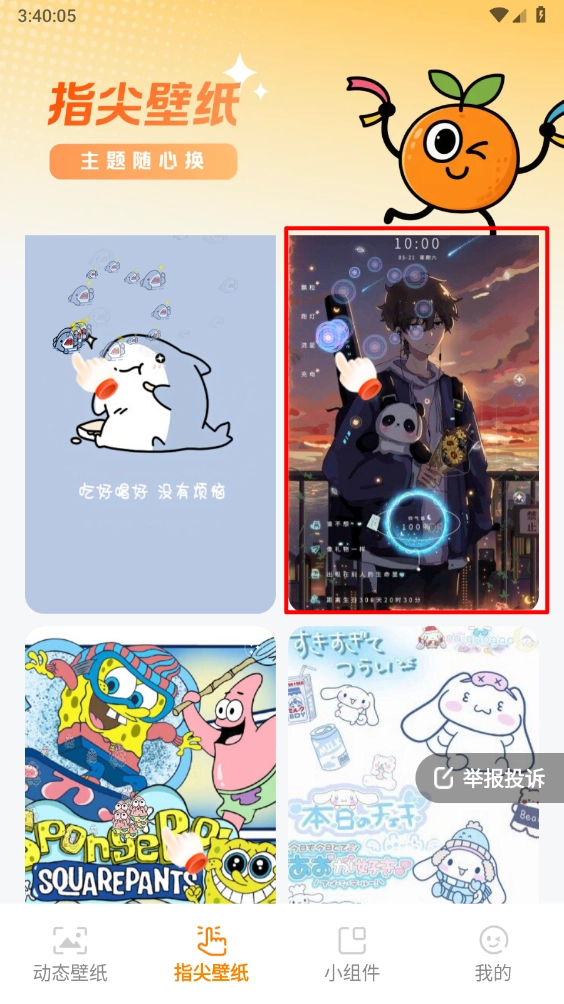 打开甜橙壁纸软件,在主页点击"小组件"进入。