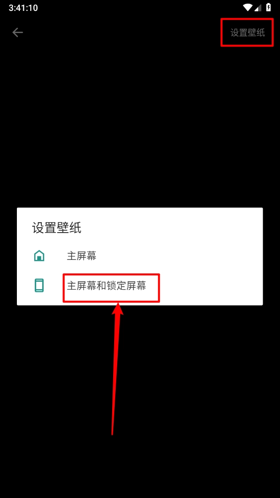 进入后点击右上角的“设置壁纸”选项,此时会弹出一个选择框,接着在框内找到并选中“主屏幕和锁定壁纸”这一选项就完成了。