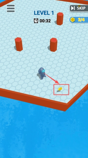 进入关卡的操作:在显示“SKIP LEVEL 1 00:53 0/4”的界面中,点击“SKIP”按钮或者等待倒计时结束即可。