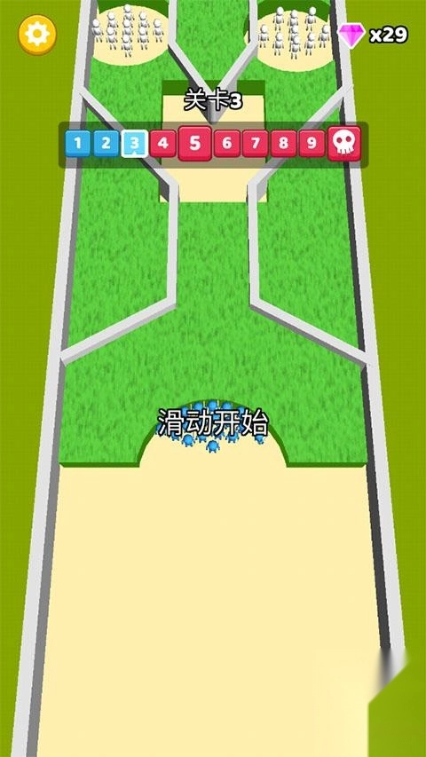 经过不同的地标会触发不同的效果,例如x3代表当前火柴人的数量变为原来的3倍。