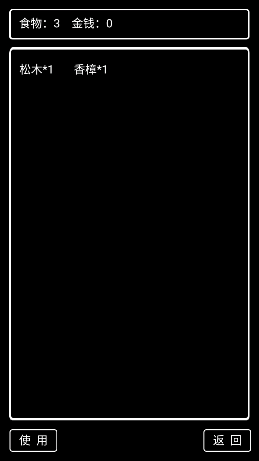 背包里能查看自己已有的材料,点击休息就能查看日记,还能恢复精力开启新的一天。