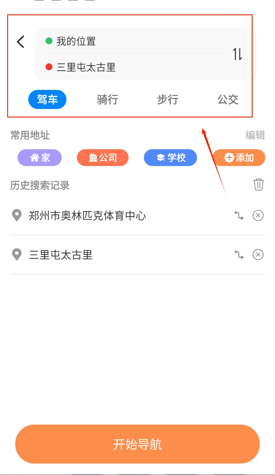 先挑选合适的出行方式,比如驾车、公交、骑行或者步行,接着查看系统给出的三条推荐路线,然后对比各路线的耗时、距离以及红绿灯的多少,最后点击开始导航。