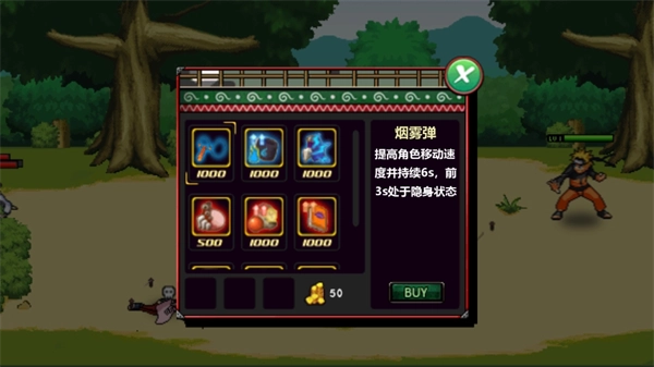 游戏战斗时可以使用的物品有拉面和忍具。