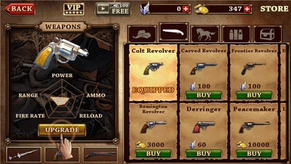 游戏里有不少道具,你得击败那些挑战牛仔的对手才能获取金币。