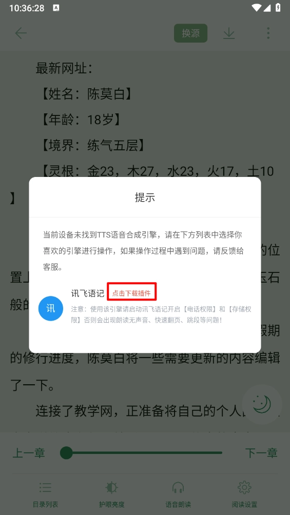首次使用需听书插件,完成后就能畅享有声阅读啦。