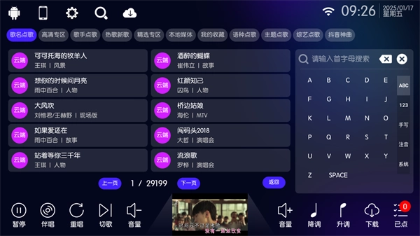 打开软件后,首先看到的是一个集合了多样点歌功能的操作界面。