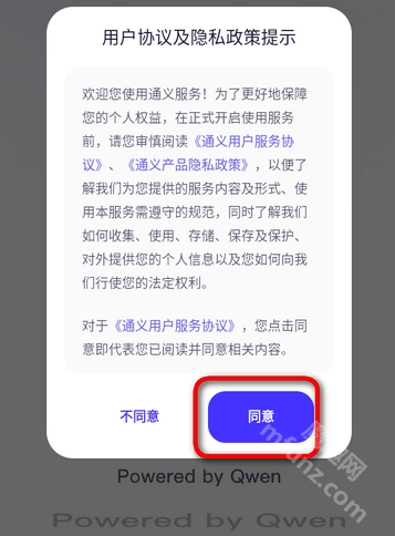 打开通义万相点击同意