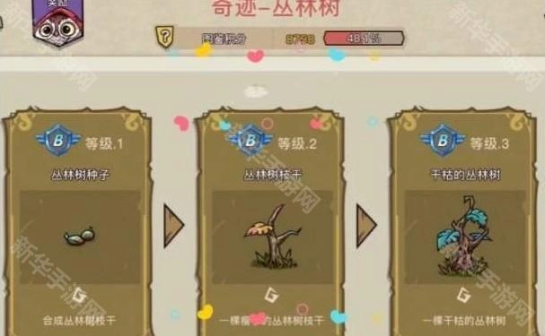 开局可以用食人花吐出的种子制作两三个三四级的净化树,之后采集净化树时,有一定几率获得丛林树种子,再用这些种子制作五个左右五级的丛林树就可以了。