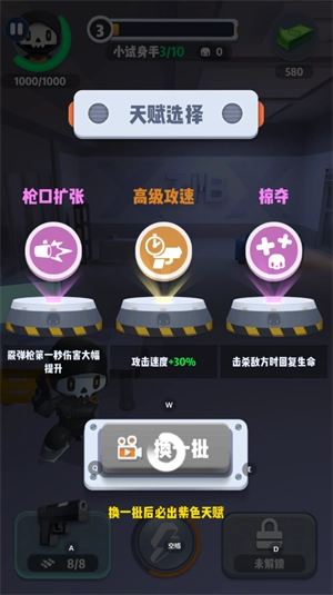 每通过一个关卡便可以选择一次天赋