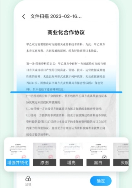文件扫描功能可自动清除背景中的杂乱区域,输出高清的PDF与JPG格式文件。