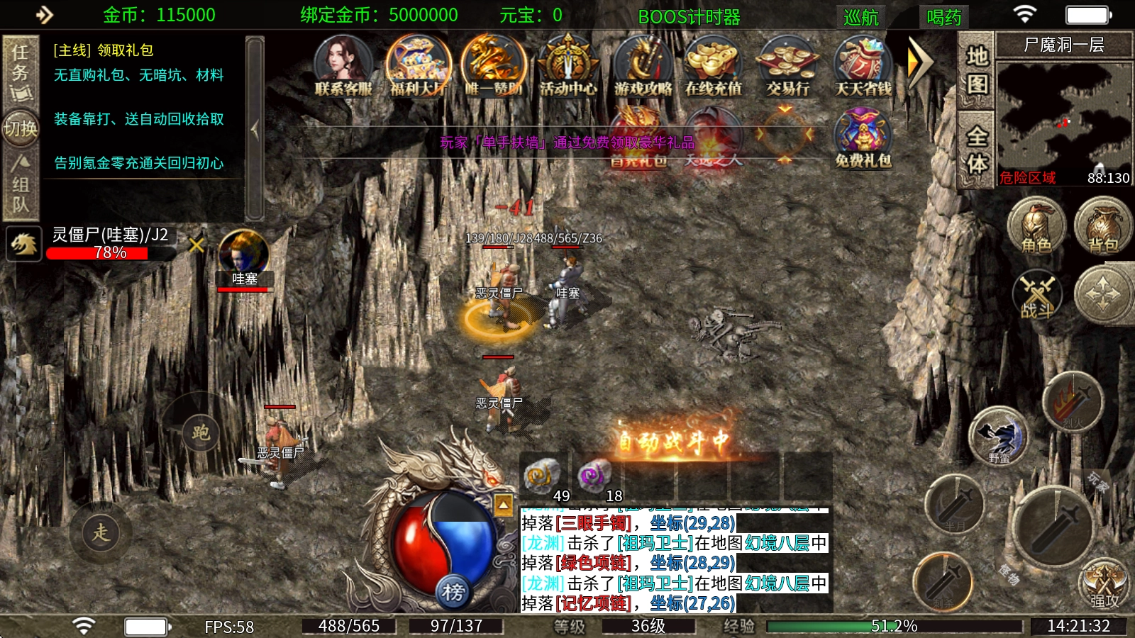 重生地图里的BOSS都是必爆怪,碰到了一定要打掉,它的刷新间隔是6小时一次。