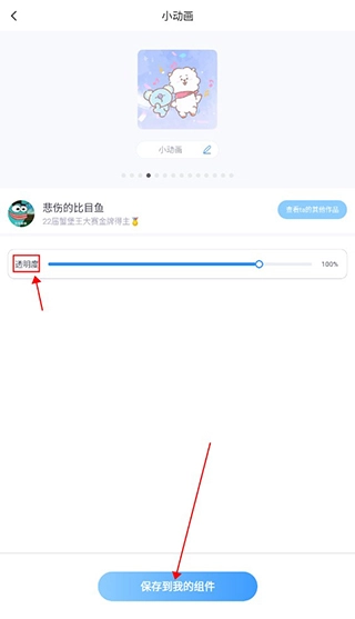 选择完成后,可对小组件的透明度进行设置,接着点击下方的“保存到我的组件”按钮,将其存入我的组件库。