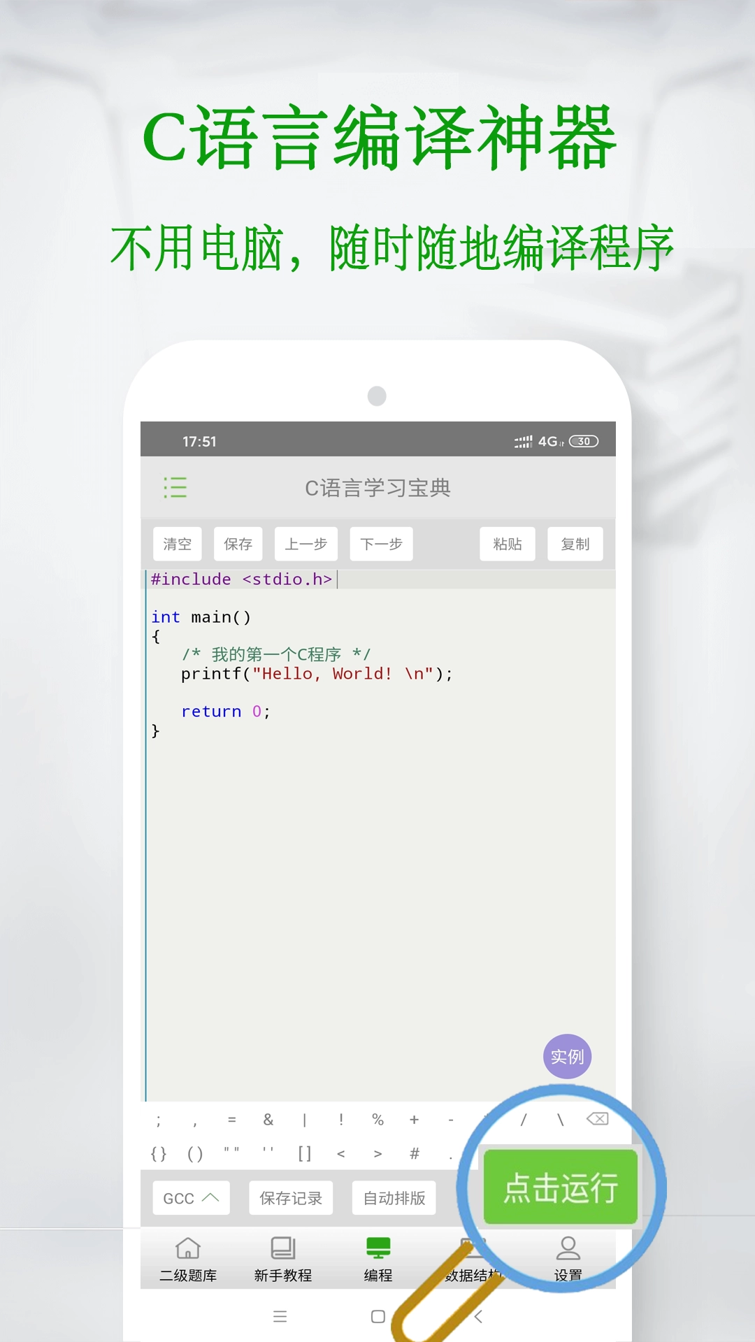 c语言学习宝典,《C语言学习宝典》是一款功能强大且操作便捷的C语言学习软件。它了丰富的课程资源与练习题库,用户既能利用手机随时学习理论知识,也能直接在手机端进行编程实战——软件配备的编程工具十分齐全,足以满足各类编程需求,助力用户轻松提升编程能力、扎实掌握核心知识点。值得一提的是,该软件还支持离线编译功能,即便身处无网络环境,也能随时随地开展编程练习,使用体验相当便捷。
