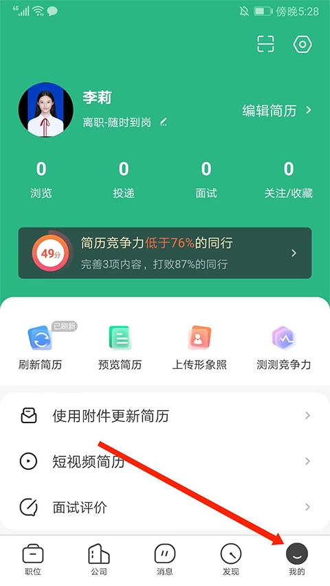 打开汇博招聘,选择右下方“我的”选项,