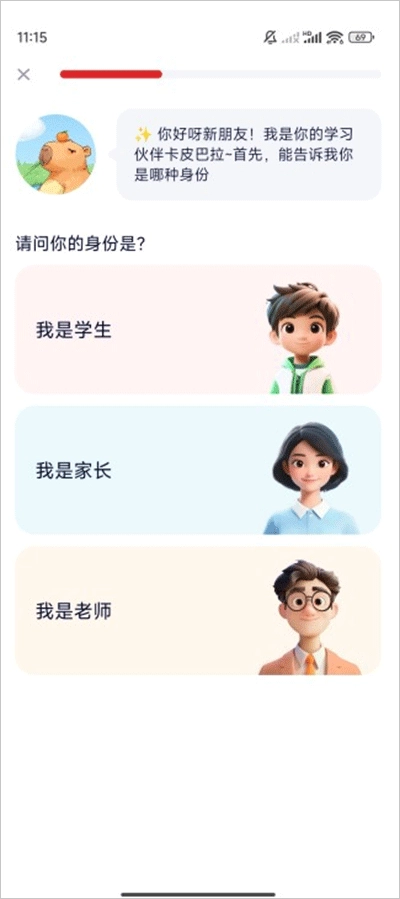 根据提示,选择身份;