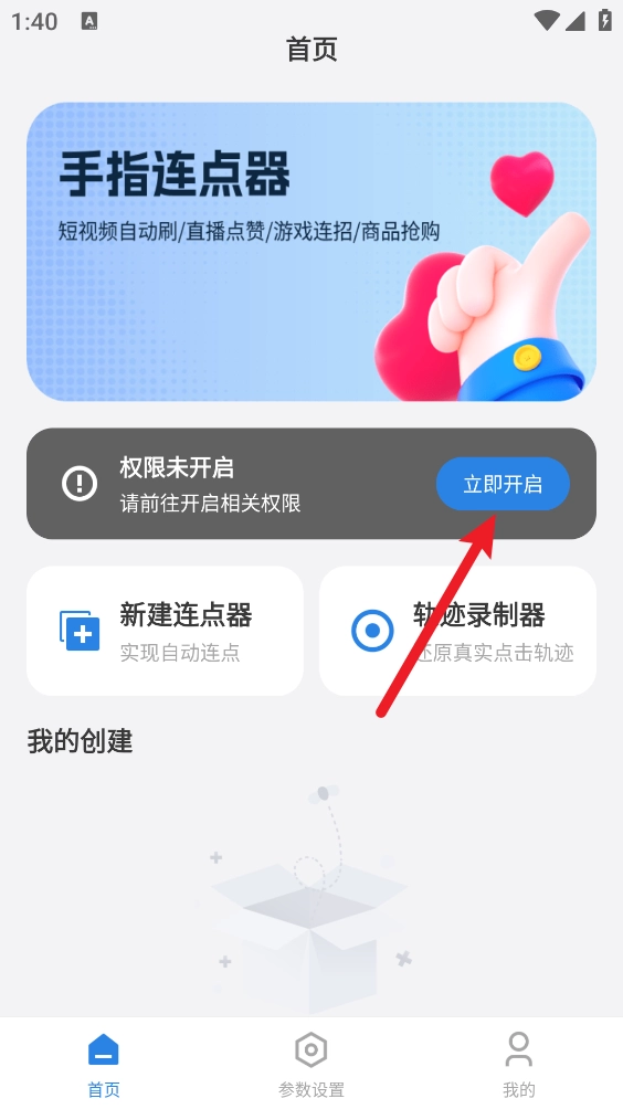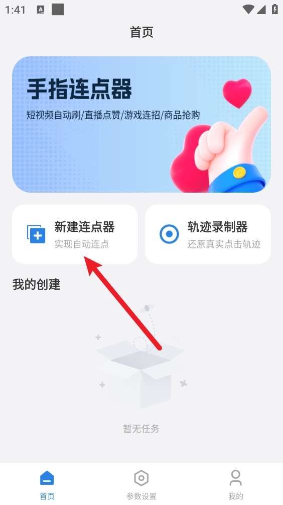 完成开启后返回主页点击"新建连点器"。