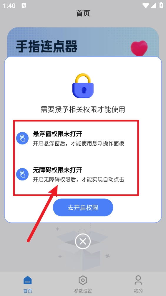 分别开启悬浮窗和无障碍权限。