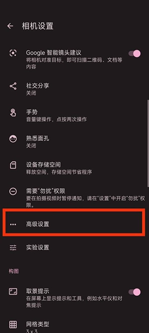 在相机设置里面找到高级设置,并且点击进入