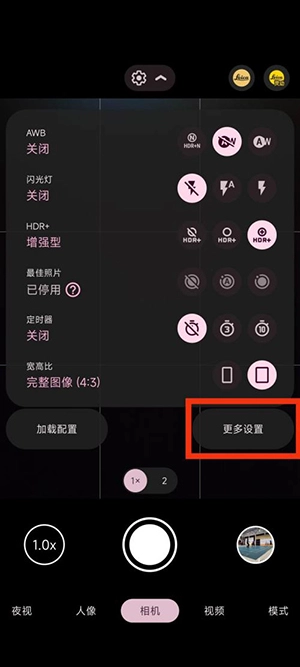 打开手机上的谷歌相机,选择右侧方的更多设置