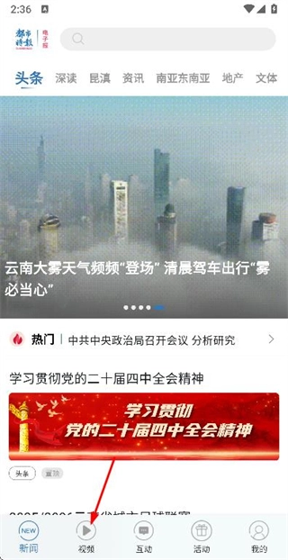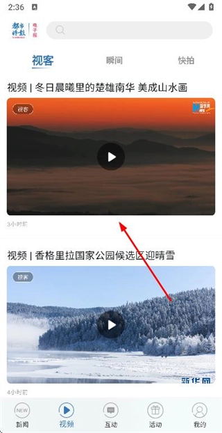 在首页点击底部的视频选项,即可进入视频内容列表页面。