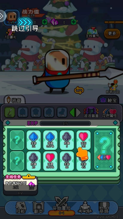天天闯关是一款结合刮刮乐玩法的放置类冒险游戏。在这个游戏里,每张刮刮卡都可能左右你的冒险走向——绿色卡片能开出基础装备,红色卡片则有机会获得更厉害的进阶武器,装备属性完全看运气,刮开就能见分晓,随时都有惊喜,战力也能快速提升! 除了装备系统外,游戏的技能组合玩法也很有深度。火、冰、雷、毒、风五种元素可以相互搭配,通过三三组合的方式,就能打造出专属于你的独特战斗风格。你既可以成为防御超强的战士,也能选择连击超快的极限攻击手,或者是能掌控全场的高爆发输出角色,所有策略都由你决定!