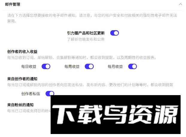 仅创作者需知晓:与账户安全及付款相关的必要邮件和消息不支持关闭。