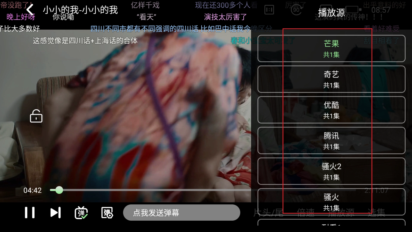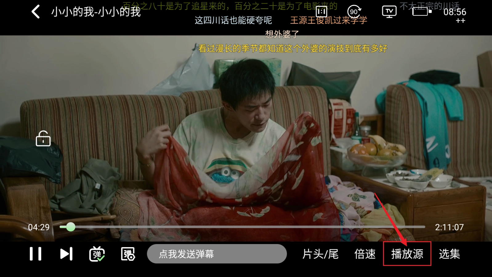还可以在全屏播放中点击右下方的"播放源"。