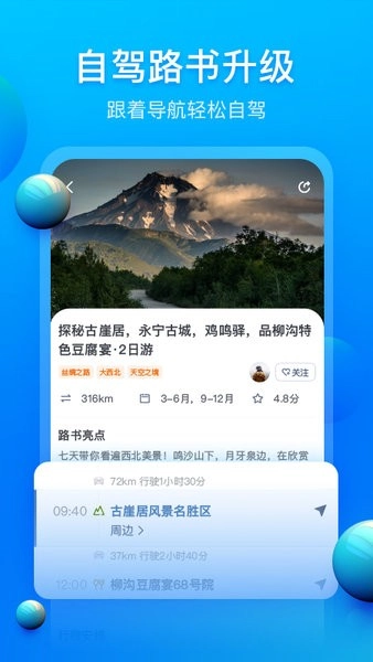 这款软件在推荐自驾游目的地时,不仅涵盖热门景点,还会兼顾山水风光、人文底蕴与古村落探秘等多元体验。