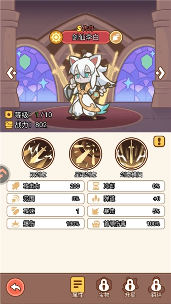 百喵齐聚,个性培育:设计出数十种风格独特的猫咪战士形象,机甲喵酷炫十足、仙女喵神秘莫测、魔法喵高冷傲娇、骑士喵憨厚老实,各有千秋。每只猫咪都拥有专属技能和独立成长系统,玩家能够自由收集喜爱的猫咪,通过培养发掘它们的全部潜能。