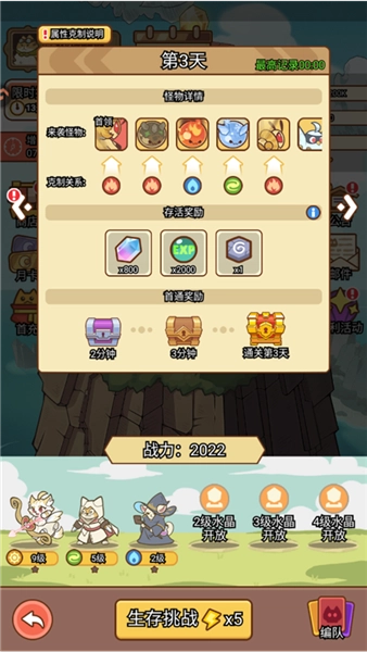 点击生存挑战,在这里你能够查看当前天数的敌人以及BOSS对应的克制关系。