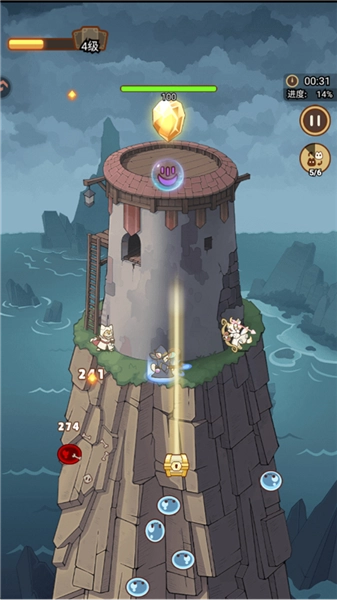 技能炸裂,割草般爽快:当多只猫咪同时释放技能,满屏酷炫特效像烟花般夺目绽放。海量敌人在猫咪的技能狂潮中被迅速清除,就像割草一样畅快,带来强烈的视觉冲击和解压的游戏乐趣。