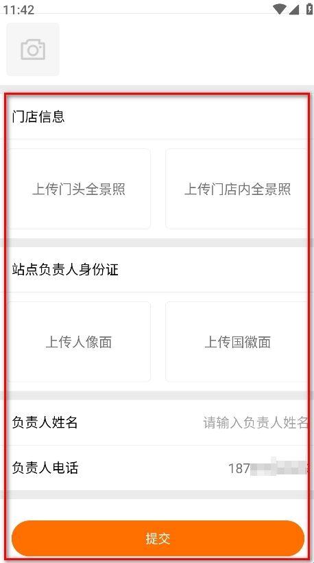 请上传门店信息照片以及站点负责人身份证的正反两面照片,接着输入负责人姓名,最后点击提交按钮就可以了。