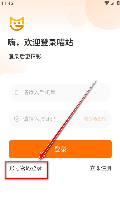 打开喵站,点击账号密码登录。